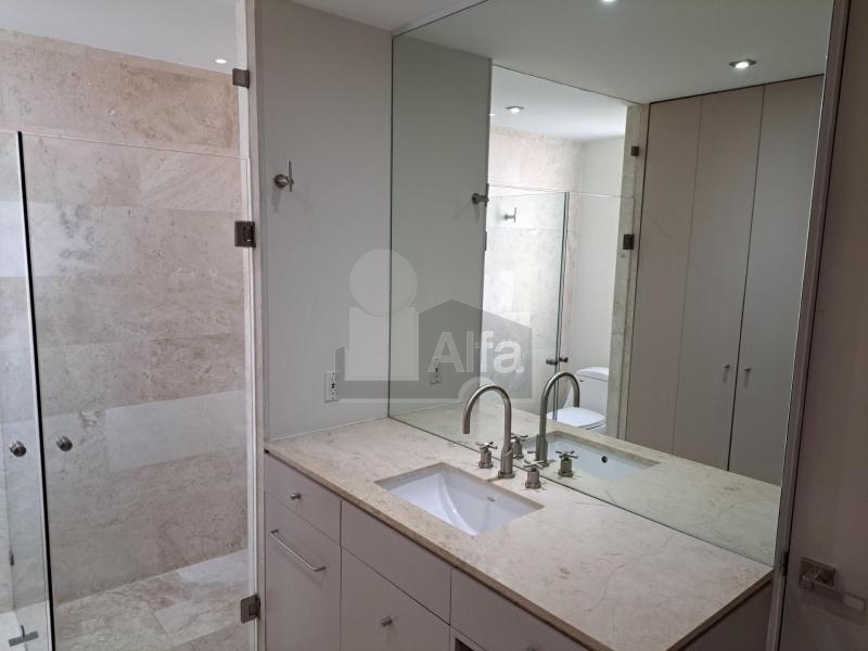 El departamento tiene 2 recámaras, la principal con baño y vestidor, segundo baño completo, amplia estancia y espacio para sala de tv o estudio, cocina abierta, cuarto de lavado y cuarto de servicio con baño propio. Tiene además dos lugares de estacionamiento.